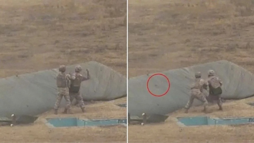 EN VIDEO: Recluta chino lanzó mal una granada y provocó una explosión que casi termina en tragedia