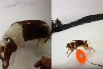 Video Viral: Perrita héroe ayudó a rescatar a su dueño que cayó en lago congelado