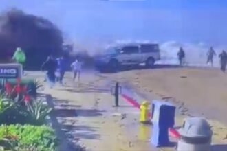 El video viral de impactante ola que arrastró todo a su paso en playa de EEUU, hubo 8 heridos