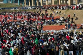 Miles de migrantes, incluyendo venezolanos, intentaron cruzar irregularmente hacia Eagle Pass, Texas,…
