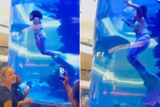 EN VIDEO: El atemorizante momento en el que una «sirena» casi se ahoga en un show en vivo
