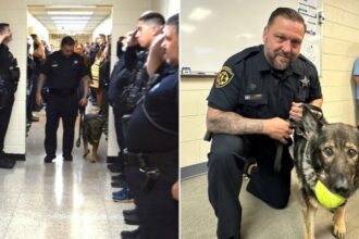 Candy, una perrita policía, fue despedida por sus compañeros de la Oficina…