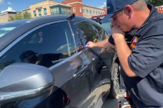 EN VIDEO: La maniobra de un policía para rescatar bebé atrapado en un carro bajo un sofocante calor