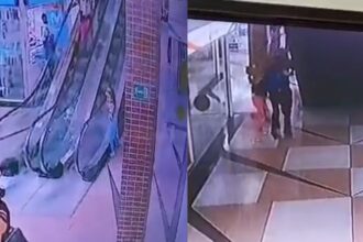 IMPACTANTE VIDEO | EN PETARE | Vigilante reaccionó rápido y atrapó a una niña que cayó de las escaleras de un centro comercial
