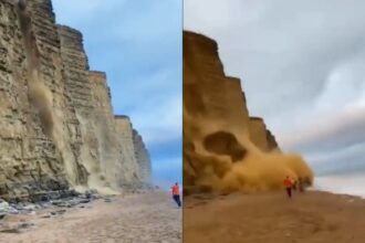 Video de terror: Acantilado se derrumbó en cuestión de segundos y casi cayó sobre unos turistas