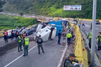 EN FOTOS | Una gandola se volcó en la bajada de Tazón este 8Ago, una persona resultó herida
