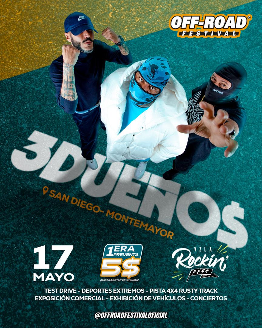 * El sábado 17 de mayo, después de 15 años de ausencia, vuelven a adueñarse del evento, la agrupación de hip hop más emblemática del país: 3 dueños. Dj 13, Budu y Zibilino tienen preparado un performance con sus grandes léxicos y están listos para entonar himnos del género como “fiera salvaje” y “originales”.