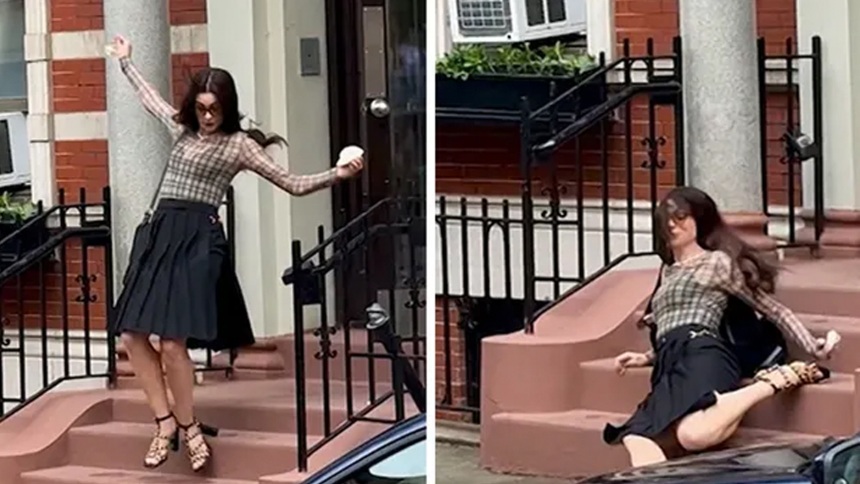 El video se viralizó rápidamente en redes sociales por el aparatoso incidente, pero también por la buena actitud de la actriz ante la situación.