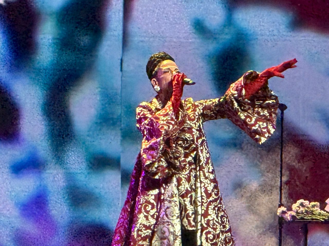 En esta gira mundial, Natalia Jiménez aseguró entre risas y jocosidad que “estaba haciendo lo que le daba la gana”. Seguidamente dio paso a un set de boleros que empezó con Cien años y cerró con Piel canela.
