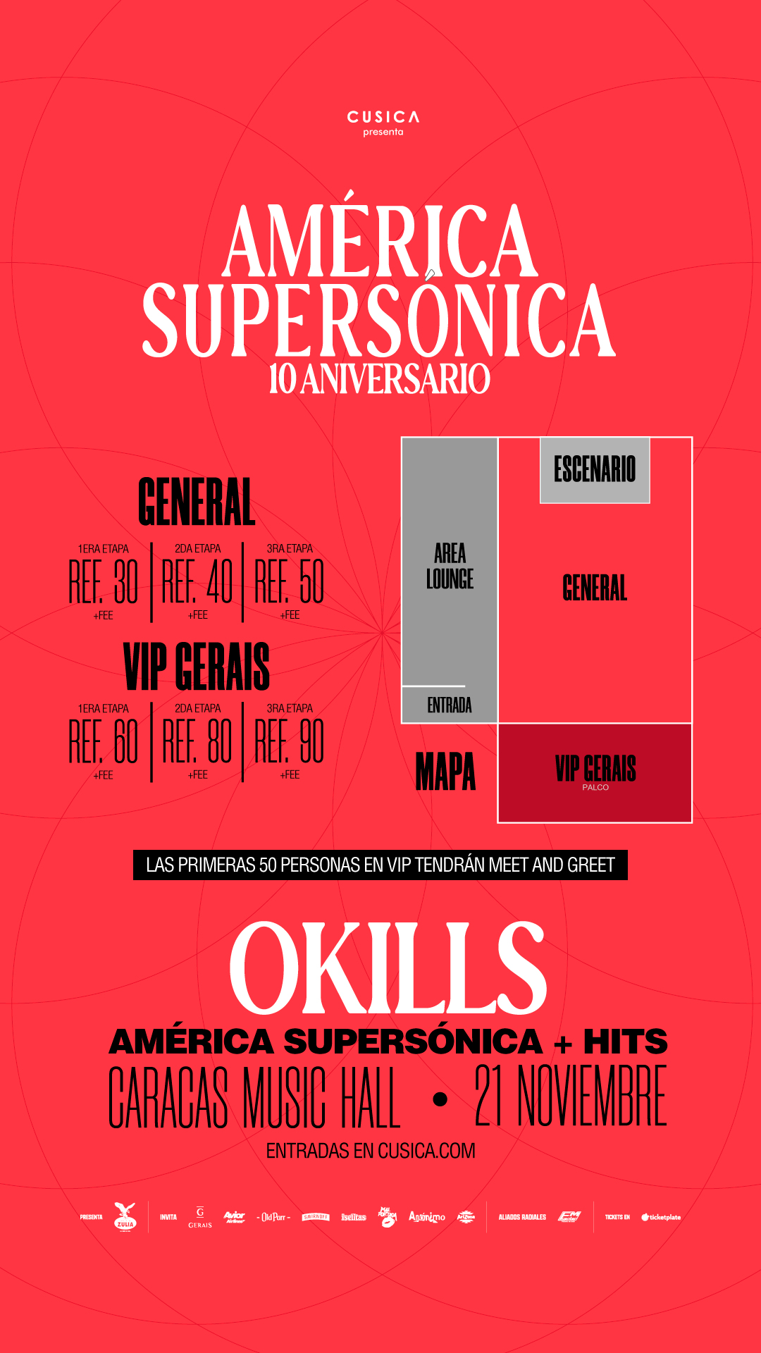 La banda venezolana Okills hará su regreso a casa para celebrar los 10 años de su álbum América Supersónica en la Sala 2 del Caracas Music Hall (C.C. Concresa) el viernes 21 de noviembre. También interpretarán las canciones más conocidas de toda su discografía.