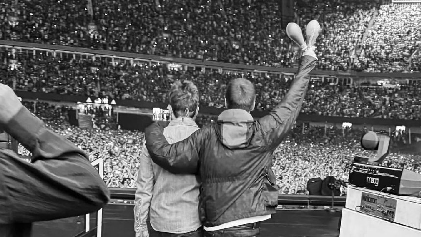 La presentación dio inicio bajo una enérgica declaración simbólica. Después de un montaje audiovisual con titulares referentes a los constantes roces entre los Gallagher, la frase «los cañones se han silenciado» se apoderó de la pantalla.