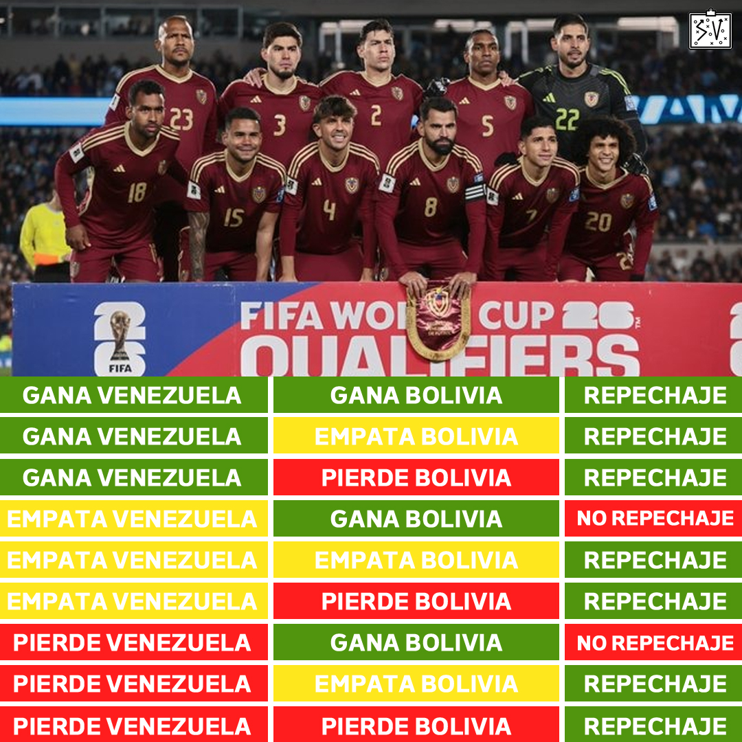 La Vinotinto viene de perder por 3-0 en su visita a Argentina y complicó su chance de meterse a la cita mundialista. Eso sí, se ubica en el séptimo lugar y depende de sí mismo para insertarse por la vía del repechaje, teniendo en cuenta que acumula 18 puntos, solo uno por encima de Bolivia, que recibirá a Brasil en El Alto.