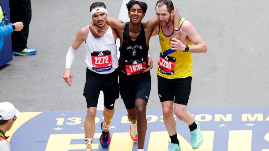 Dos corredores sacrificaron su llegada en la Maratón de Boston para ayudar a un rival que se desplomó a pocos metros de la meta, en una escena de solidaridad que dio la vuelta al mundo.