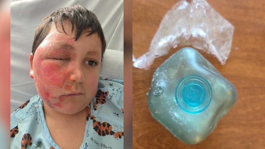 Su madre, Whitney Grubb, relató a ABC 7 que el menor gritaba desesperado mientras el gel derretido le quemaba el rostro.