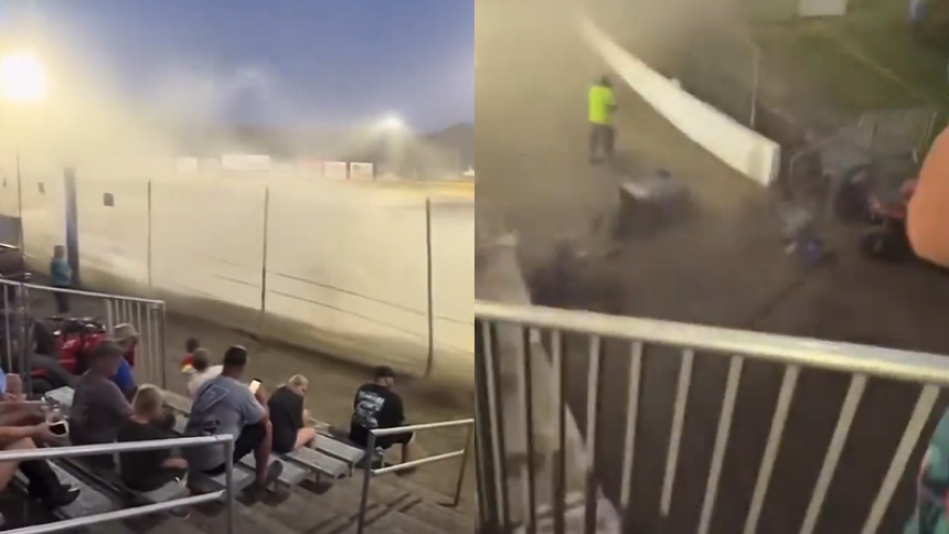 Durante la competencia “Hunt for the Front” de la serie Super Dirt, un auto de carreras perdió el control en una curva, escaló la pared del circuito y atravesó la valla de seguridad, impactando directamente contra las gradas repletas de espectadores.
