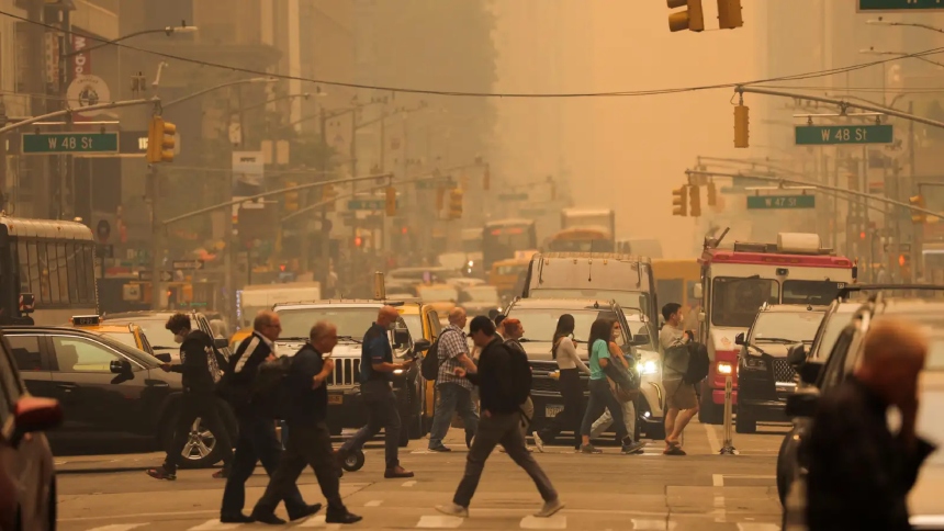 De acuerdo con el Servicio Meteorológico Nacional (NWS, por sus siglas en inglés) y las autoridades estatales, una combinación peligrosa de ozono troposférico y humo proveniente de incendios forestales en Canadá, elevaron los niveles de partículas contaminantes a cifras alarmantes.