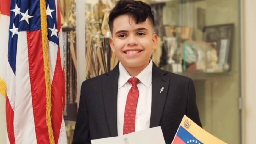 Lucas, un niño venezolano que llegó a Estados Unidos con apenas un año de edad, fue admitido como miembro de la National Junior Honor Society (NJHS), una de las distinciones académicas más importantes para estudiantes de secundaria en ese país.