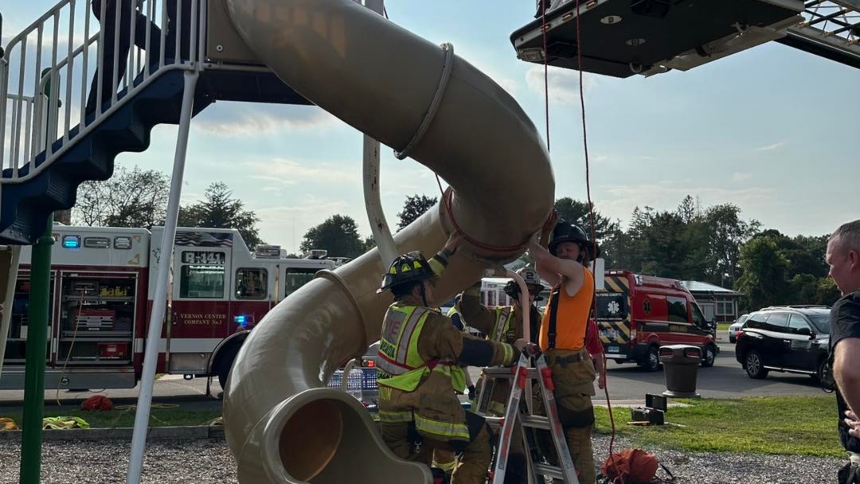 Un parque infantil en la Northeast Elementary School de Vernon, en Connecticut (EEUU), se convirtió en escenario de una operación de rescate poco convencional, cuando un hombre de 40 años quedó atrapado en la sección media de un tobogán tubular, generando una respuesta inmediata por parte de los cuerpos de emergencia locales.