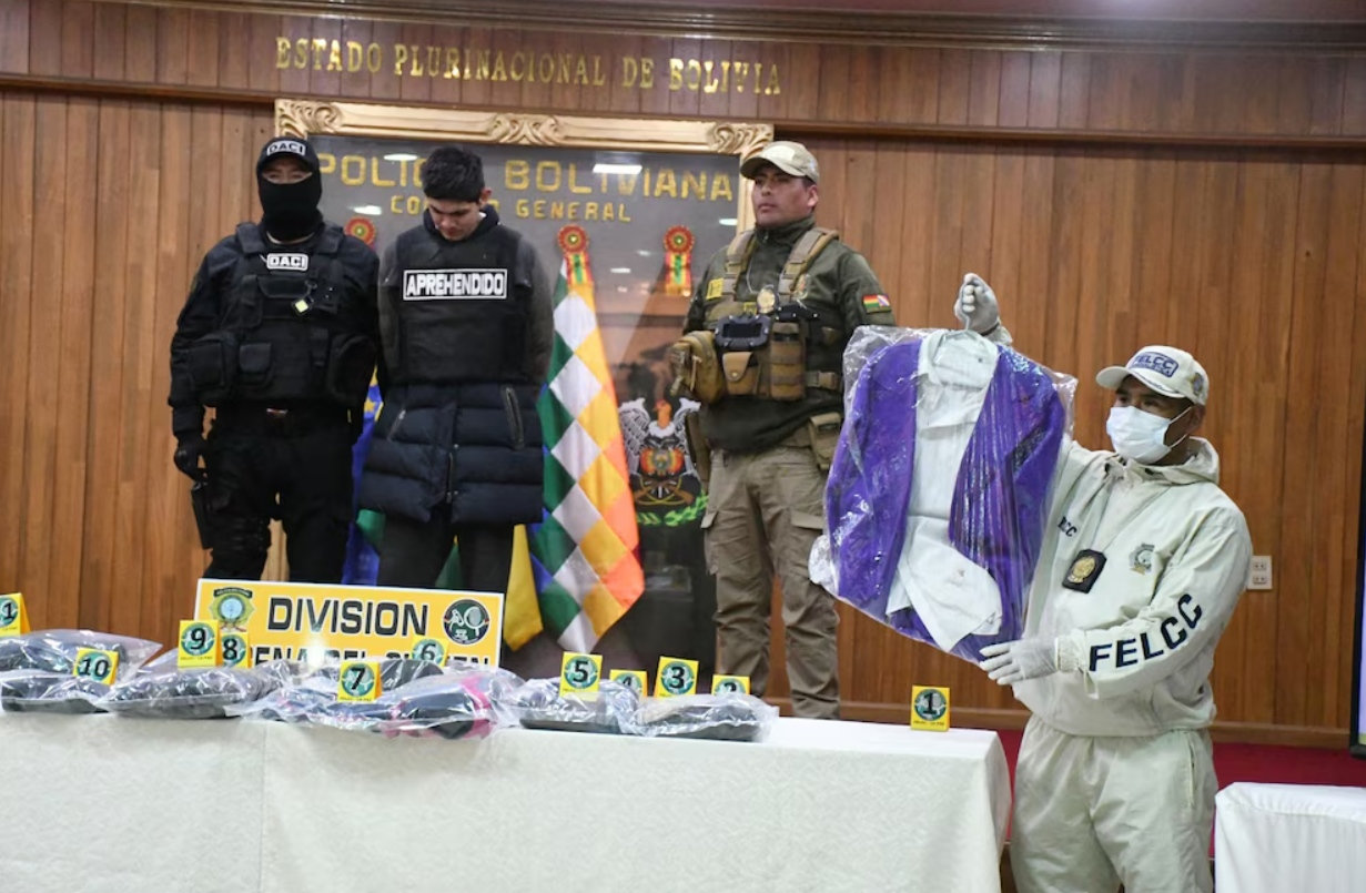 «Al momento se lo ha encontrado con el disfraz propiamente dicho, del Joker, y efectivamente se ha podido percatar la Policía Boliviana que contaba con manchas hemáticas», explicó.