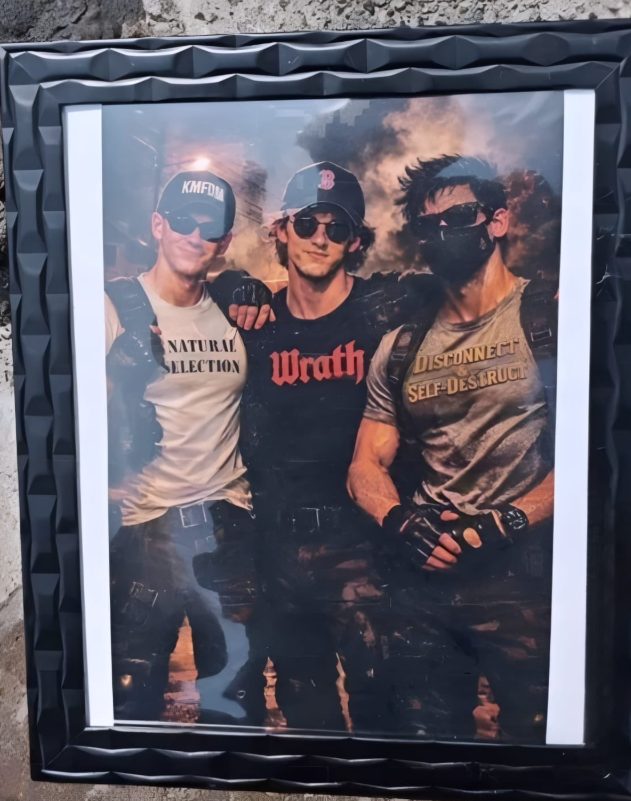 El hombre vestía un cubrebocas y una camisa de cuadros gris. En la fotografía generada por inteligencia artificial llevaba una camiseta con la leyenda «Disconnect and Self-Destroy» («Desconecte y autodestrúyase»). Una frase vinculada a la True Crime Community (TCC), una subcultura digital global que glorifica a los asesinos de masas.