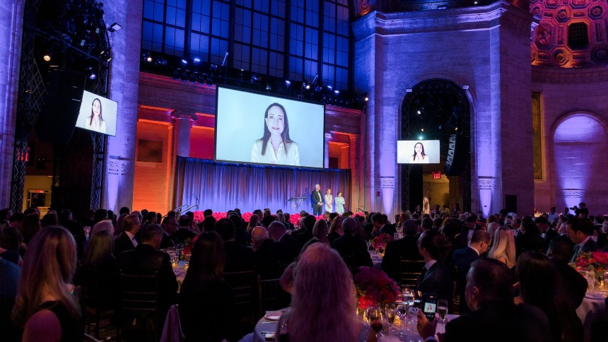 Machado recibió la distinción en una ceremonia celebrada en Nueva York, Estados Unidos. Ante varios líderes empresariales, diplomáticos y defensores de la democracia, la opositora dio un breve discurso pregrabado en video.
