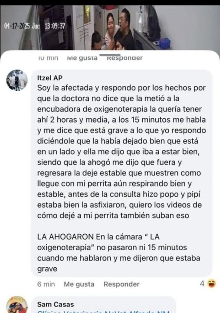 «Soy la afectada y respondo por los hechos porque la doctora no dice que la metió a la oxigenoterapia. La quería tener ahí dos horas y media, a los 15 minutos me habla y me dice que está grave a lo que yo respondo diciéndole que la había dejado bien (…) muestren como llegué con mi perrita aún respirando bien y estable, antes de la consulta hizo popo y pipí estaba bien y la asfixiaron», comentó.