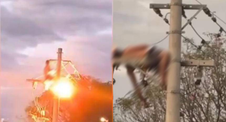 En las imágenes se ve como debido a la electricidad, tanto su cabello como su ropa se empiezan a prender en fuego. Además, a pesar de que al lugar llegaron los bomberos, aún estaban evaluando la situación para subir a buscar el cuerpo, sin saber si aún estaba con vida.