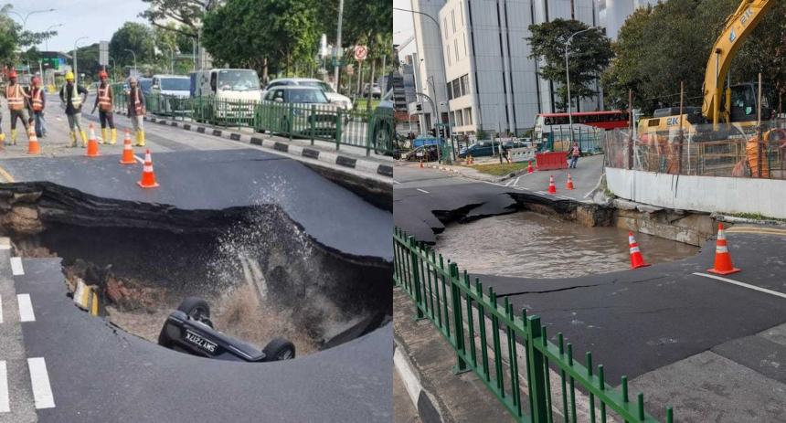 El hundimiento se produjo en la intersección de Tanjong Katong Road y Mountbatten Road, junto a una obra en ejecución.