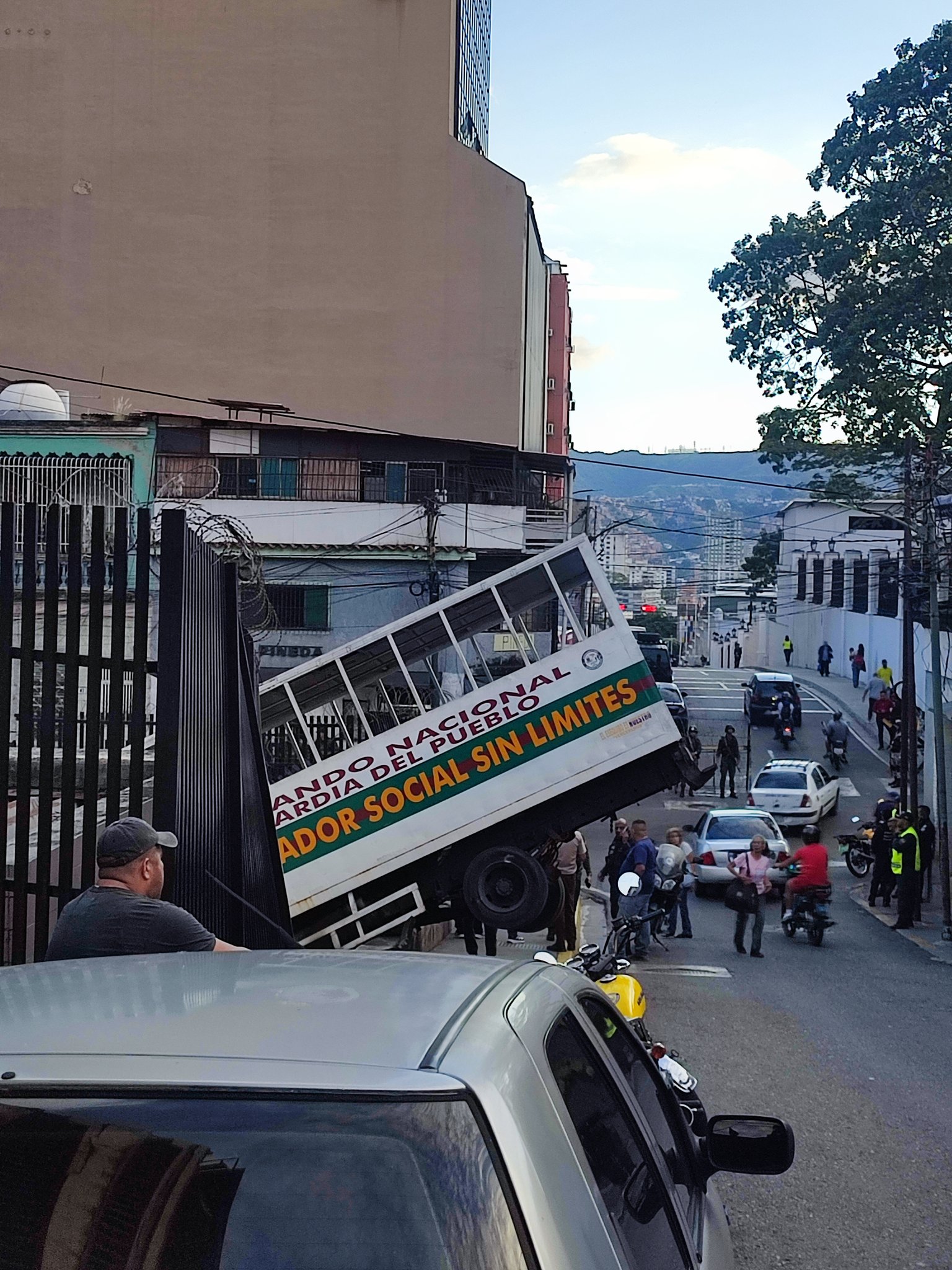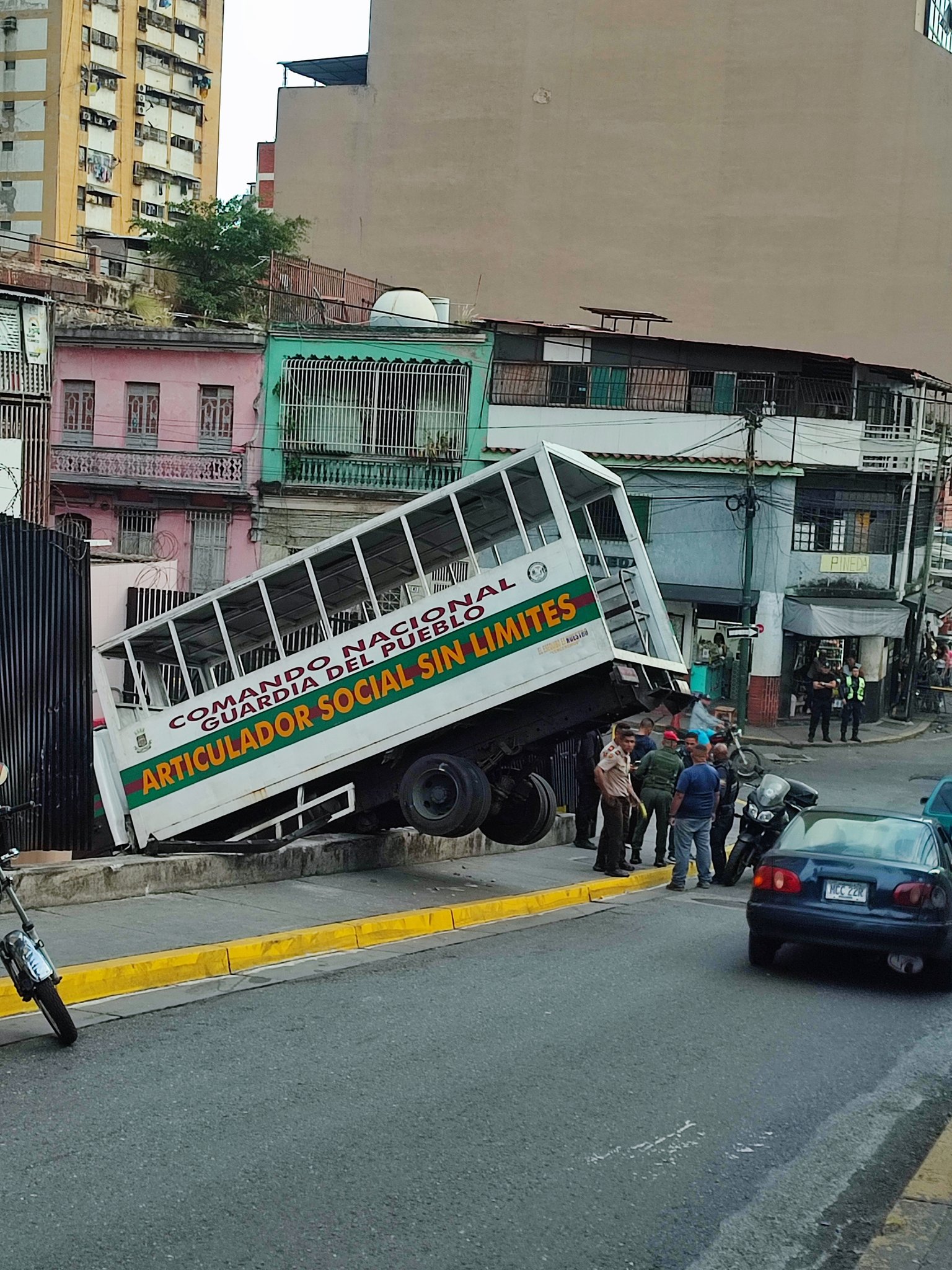 Un vehículo de la Guardia Nacional Bolivariana (GNB) se vio involucrado este jueves en un extraño accidente en las inmediaciones del Palacio de Miraflores, en Caracas. A pesar de la gravedad del siniestro, no hay reporte de heridos.