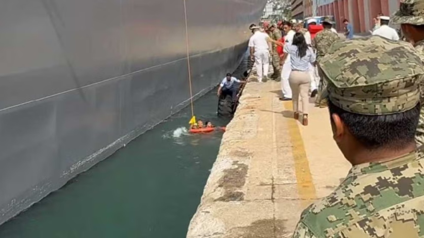 VIDEO VIRAL: La aparatosa caída al agua de una bailarina en plena despedida de un Buque Escuela