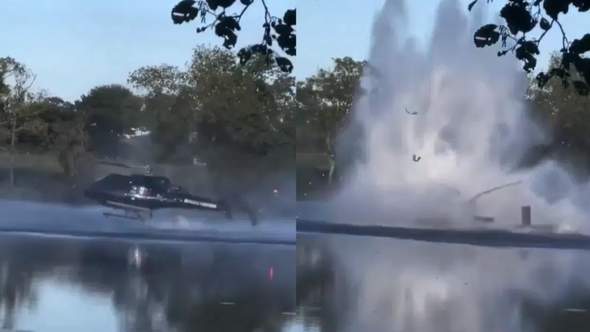 VIDEO IMPACTANTE: Helicóptero de los bomberos se estrelló contra una laguna