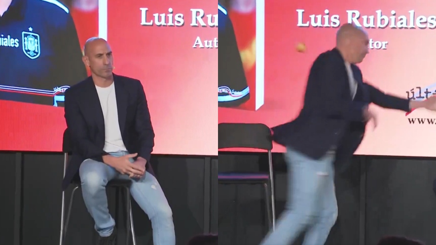 VIDEO VIRAL: Tío de Luis Rubiales fue quien le lanzó con huevos en plena presentación de su libro