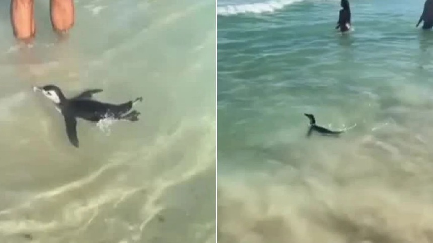 Un video del ave no voladora se hizo viral rápidamente en redes sociales. En el metraje, se ve al ejemplar nadando con soltura, pese a ser una especie acostumbrada a las gélidas aguas. Mientras algunos observaban fascinados, otros se mostraban incrédulos.