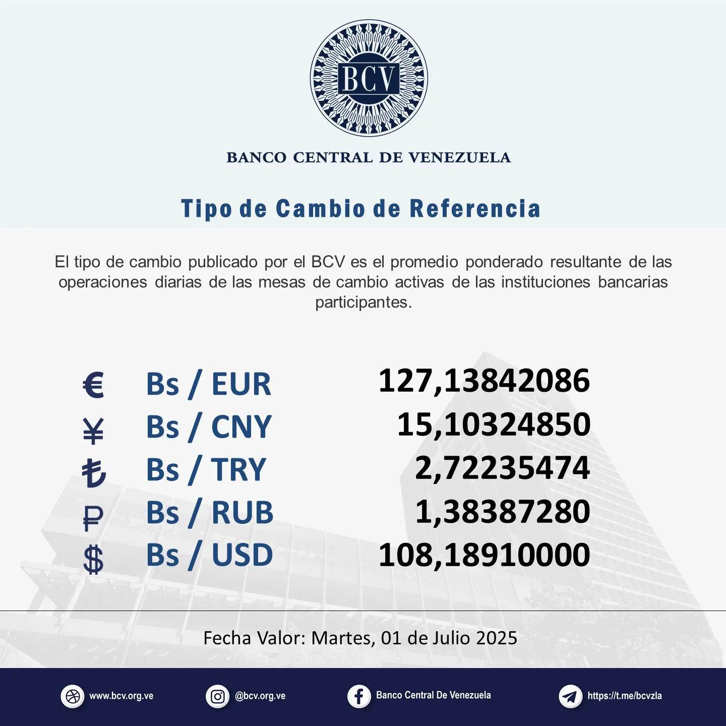 El dólar oficial inició la jornada de este 1 de julio con tendencia alcista al cotizarse en Bs. 108,19.