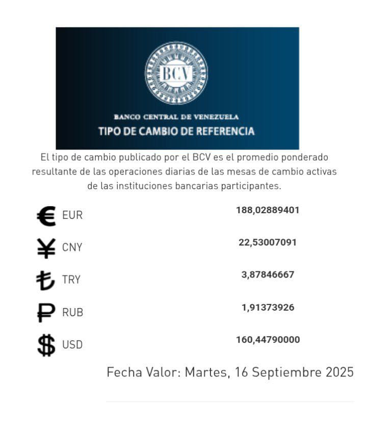 El dólar oficial inició la jornada de este 15 de septiembre con tendencia alcista al cotizarse en Bs. 160,45.