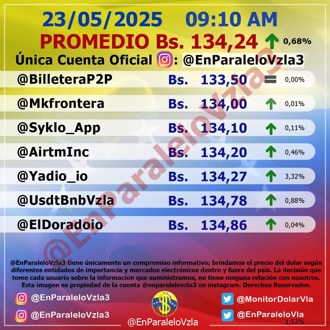 El dólar paralelo inició la jornada de este 23 de mayo con tendencia alcista al cotizarse en Bs. 134,24.