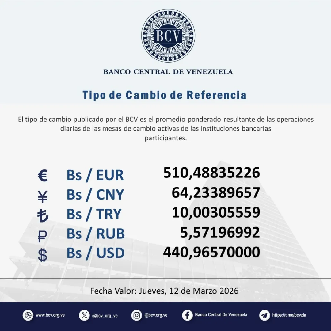 «El tipo de cambio publicado por el BCV es el promedio ponderado de las operaciones de las mesas de cambio de las instituciones bancarias», señaló el ente emisor.