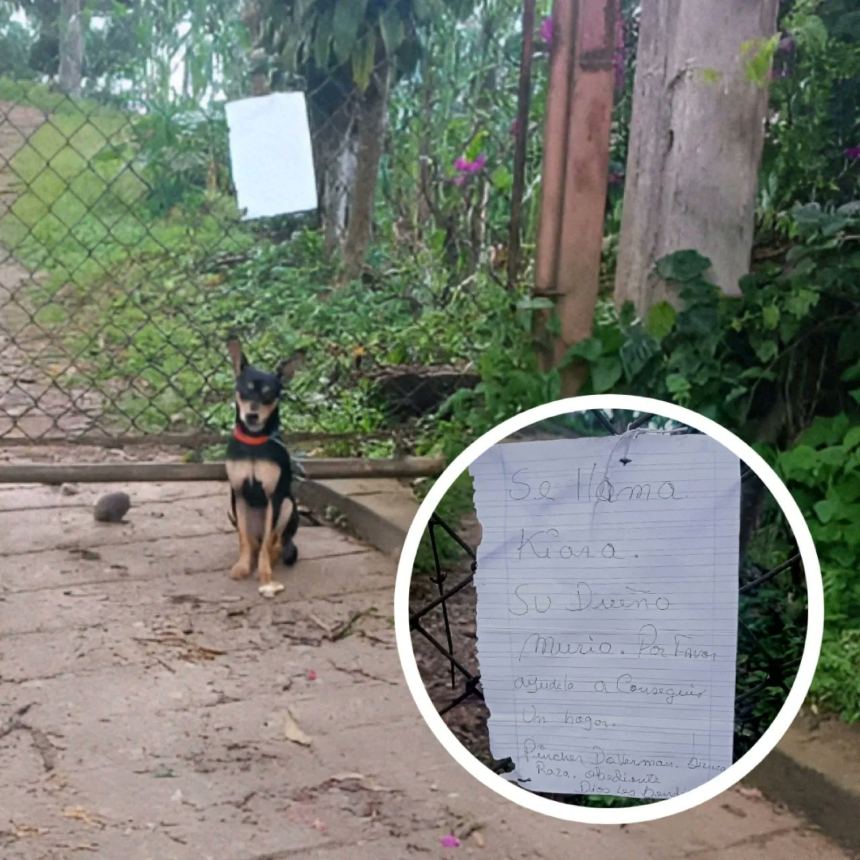 Según el escrito, su dueño falleció recientemente y los allegados de la familia afirmaron no tener la posibilidad de hacerse cargo de ella. “Es de raza y muy obediente”, especificó la nota, colocada junto a la perrita, quien permanecía visiblemente asustada, pero tranquila, según reseñó El Tequeño.