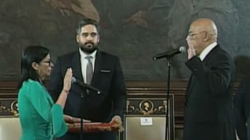 Unas horas después de la instalación de la nueva Asamblea Nacional, Delcy Rodríguez, vicepresidente de Nicolás Maduro y ministra de Hidrocarburos, presentó el juramento frente a su hermano, Jorge Rodríguez.