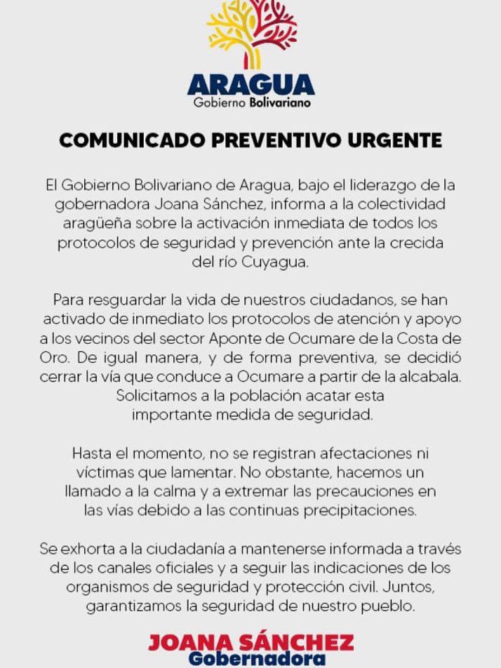 Comunicado de la Gobernación de Aragua